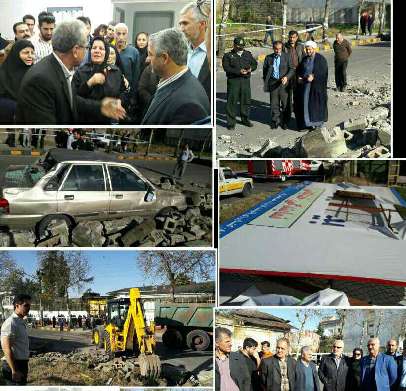 در ابتدا تیم آتش نشانی شهر لاهیجان مشغول آوار برداری از روی خودروهای پارک شده در کنار این دیوار فروریخته بودند.بین خودرو ها مردی 70 ساله بیهوش و بدون علایم دیده شد.
