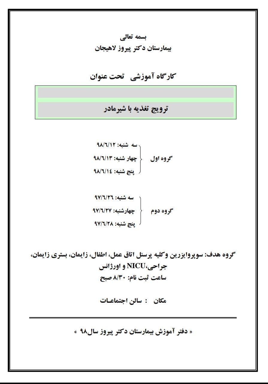 پودمان های آموزشی شهریور98 در بیمارستان دکترپیروز